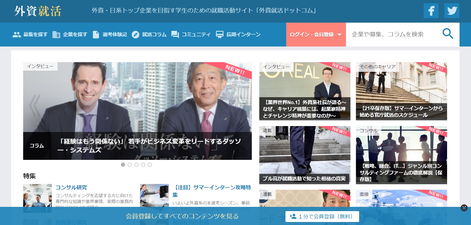 外資就活ドットコムは外資系・日系トップ企業への就職を目指す学生のための就活サイトです。高い志を持った学生が集まっています。また、長期インターンの募集も掲載されており、学生インターンを受け入れたい企業にもおすすめです。