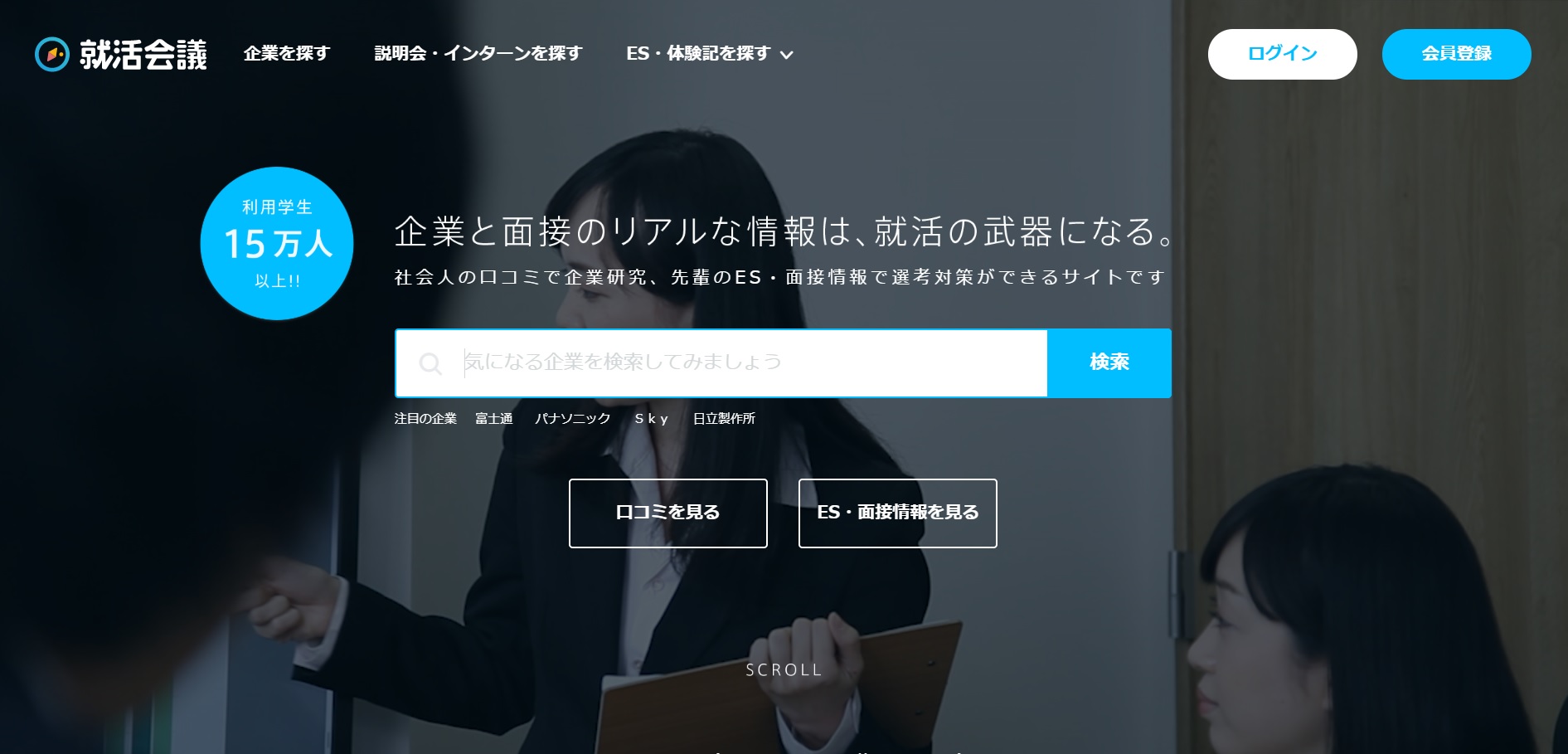 就活会議では社員・元社員の企業への口コミ、ES・選考体験記などを読むことができます。入社前に、どのような会社であるのか生の声を知ることができるのは学生にとって大きなメリットなので、登録する学生が多くいます。