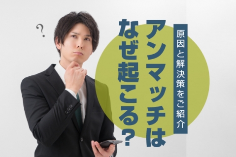 アンマッチを日本語に訳すと「一致しないこと」です。雇用には企業側と求職者側の条件が一致する必要があります。しかし採用の場面では、人材のアンマッチが発生するものです。採用要件に完全にマッチする人材はほぼいません。また応募者が思っている条件にマッチする企業も多くないのが現状です。アンマッチを解消するには、お互いの条件にアンマッチが発生していることを認め、相互に譲歩する必要があります。しかし、企業側と求職者側がそれぞれの基準に沿うように振舞い過ぎるとゆくゆくはアンマッチが生じる可能性もあります。譲歩しつつ両社共に素の様子を見せるように努めることもアンマッチを避けるうえで大事でしょう。