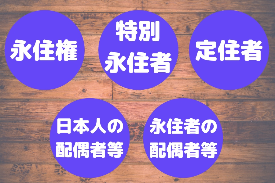 居住できるビザには5種類があります。
